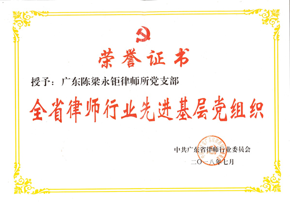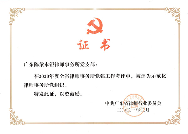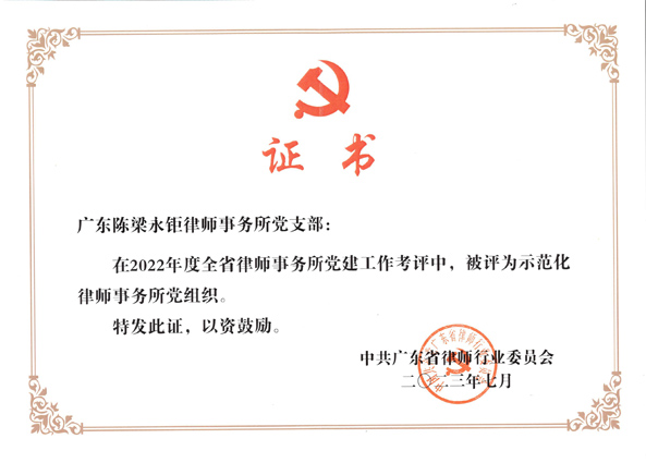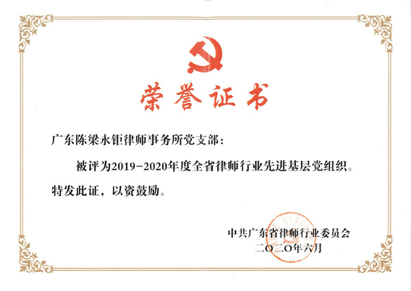 2020年6月评为2019-2022年度全省律师行业先进基层党组织