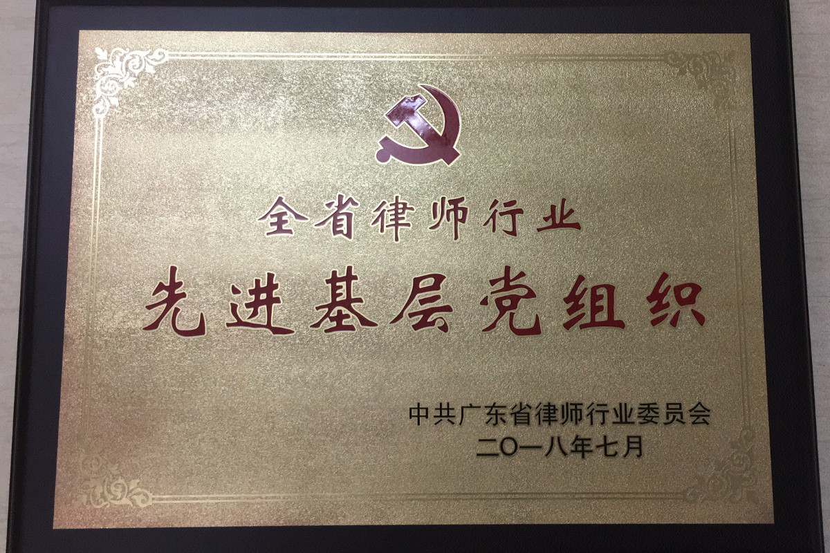 2018年7月22日举行的第十一届广东省律师代表大会第二次会议上,本所党支部受到表彰,获中共广东省律师行业委员会授予“全省律师行业先进基层党级织”称号。