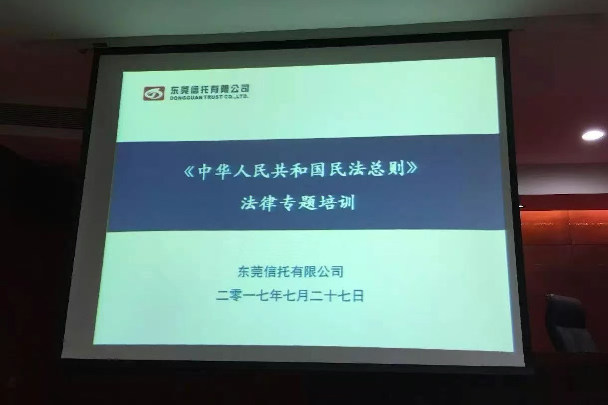 《中华人民共和国民法总则》(以下简称“《民法总则》”)已由中华人民共和国第十二届全国人民代表大会第五次会议于2017年3月15日通过,自2017年10月1日起施行。为全面贯彻实施《民法总则》及加强对民法的学习、了解和应用,进一步提升公司员工的法律意识及法律素养,东莞信托有限公司于2017年7月27日......